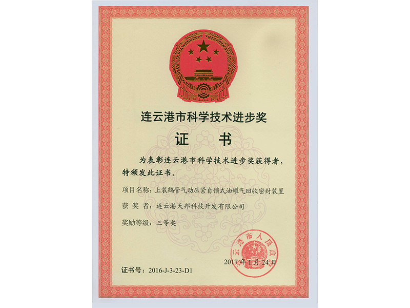2011年: 成立連云港市(天邦)流體裝卸臂工程技術研究中心、科技創新優秀單位